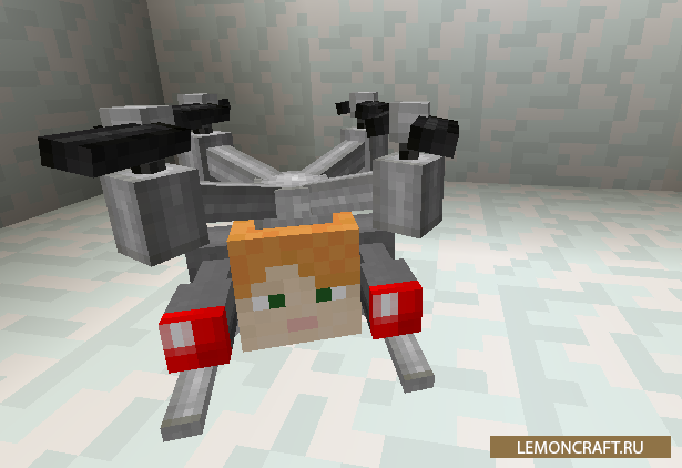 Модификация добавит в игру два новых моба - враждебного и дружеского дронов. Враждебный дрон будет нападать на игрока, дружелюбный же, напротив, защищать и атаковать враждебных мобов встроенным лазером.
