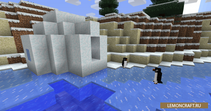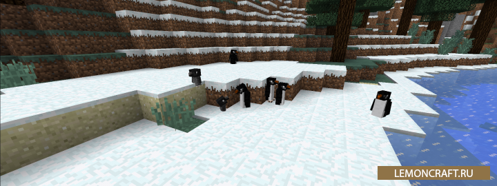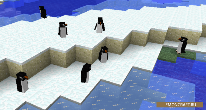 Мод Waddles добавляет в игру милых пингвинов, которых вы сможете обнаружить в таких биомах, как Ледяные равнины, Холодный пляж, Замороженный океан. Кроме этого пингвины могут появляться в биомах, которые предоставляет мод Biome'o'Plenty. Так же в игре появится новое строение - игла, это место, где будут жить пингвины.