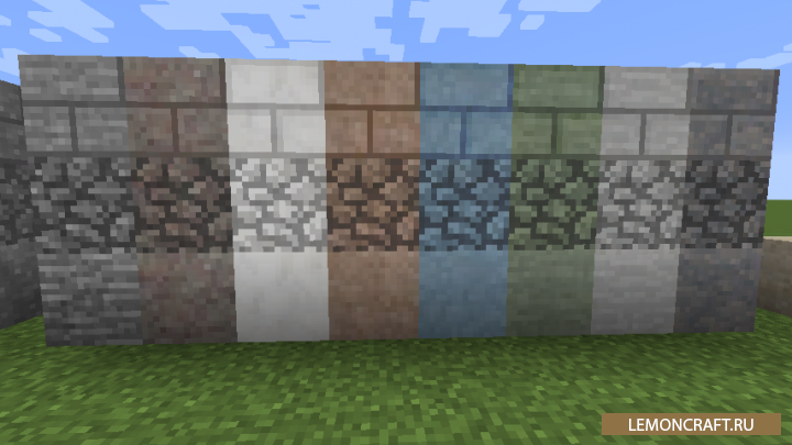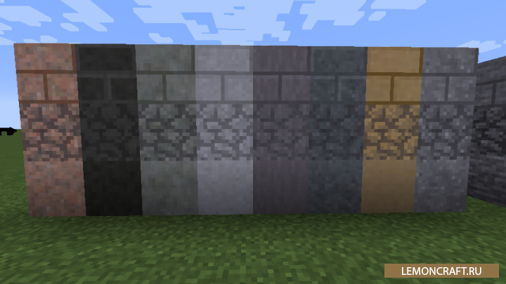 Мод Underground Biomes является небольшим декоративным дополнением, которое добавит в игру 24 вида камня и 16 типов булыжника. Кроме этого в игре появится большое количество полублоков, кнопок и лестниц.