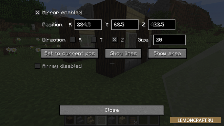 Мод на копирование построек Effortless Building является довольно простым модом, который позволяет упростить жизнь строителя. С его помощью вы сможете копировать уже построенные вами строения. Процесс копирования заключается в следующем: когда вы установили какой то блок, в тот же момент устанавливается аналогичный блок в зеркальном отражении от первого. Для того, что бы открыть меню мода используйте кнопки Num0, Num1. В итоге включится режим Quickreplace который позволит заменять блоки из одного материала на блоки из другого материала.