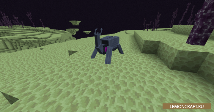 Мод на новых мобов и структуры Eetles Reborn добавит в игру новых мобов, которых можно найти только в энд мире. Данных животных можно покормить и они начнут увеличиваться в размерах - расти. Кожу данных животных можно использовать что бы создать крылья. Так же от этих животных вы можете получить рог, который позволит создать самурайский шлем. Данный шлем более прочный, чем алмазный. Кроме всего этого животные могут вас накормить. Они откладывают яйца, которые можно использовать как еду или как краситель.