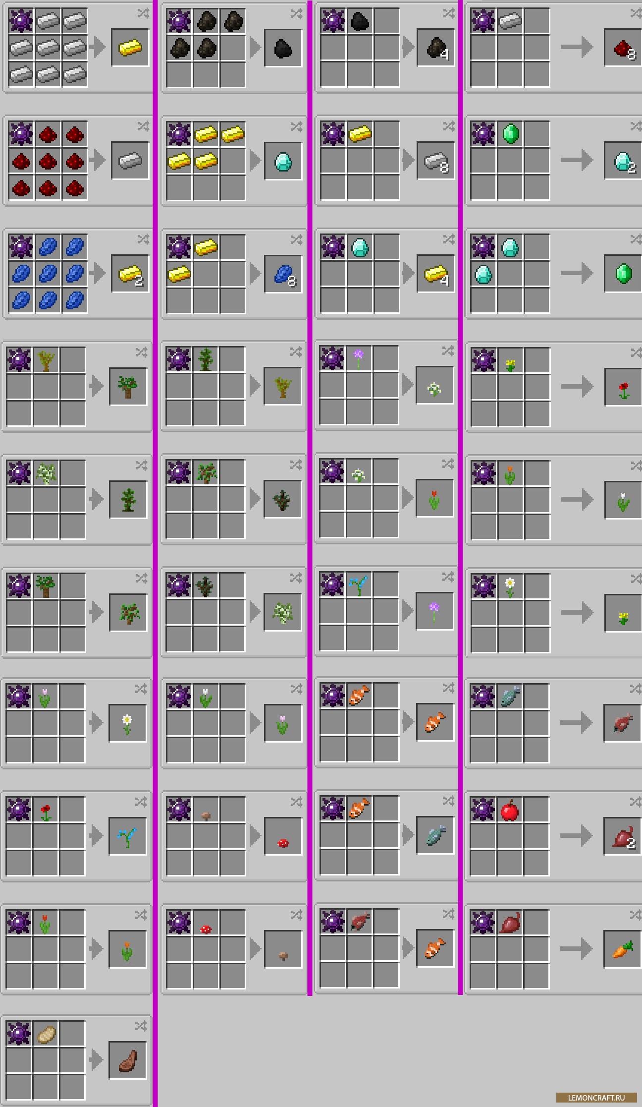 Мод на обменный камень Equivalent Stone дает вам возможность обменивать, превращать, создавать из одних предметов, другие. Вы можете взять несколько недорогих предметов и сделать из них один дорогой, или наоборот из одного дорогого сделать несколько дешевых. Например из 1 алмаза можно получить 4 золота, а из 4 золота один алмаз. Но не сильно радуйтесь, у камня есть предел прочности. Через определенное количество срабатываний он придет в негодность.