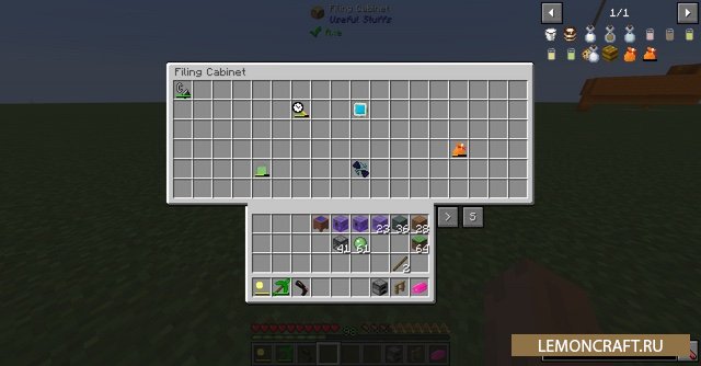 Мод на полезные блоки и инструменты Useful Stuffs добавит в игру множество полезных блоков и инструментов, которые сделают ваш мир намного удобнее и разнообразнее. Например в игре появятся сгодные кусты, их можно как кушать, так и использовать в качестве красителя. Рабочий стол, позволит вам хранить нестакуемые предметы. Пушка, будет стрелять светом. Появится множество новых эффектов, например вы сможете ходить по воде или по лаве. И множество других полезных фишек, которые делают игру еще интереснее.
