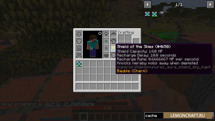 Мод на технологичные щиты Superior Shields является небольшим аддоном для мода Baubles, который добавит в игру новые силовые щиты, работающие как энергетические. Данные щиты накапливают мощность для отражения атаки, с каждой новой атакой мощность данных щитов уменьшается. Т.е. во время битвы, если видно, что мощность щита близка к нулю, нужно где то отсидеться, что бы щит опять набрал мощность.