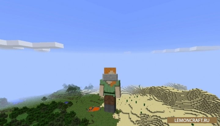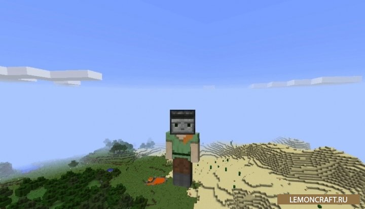 Мод на головной блок Blockhead! даст вам возможность надеть на голову любой блок или предмет, которые присутствуют в игре. Для того, что бы надеть на голову новый головной убор, нужно взять его в руки и нажать клавишу . (точка) на клавиатуре. Теперь вы сможете выделить себя среди других участников игры.