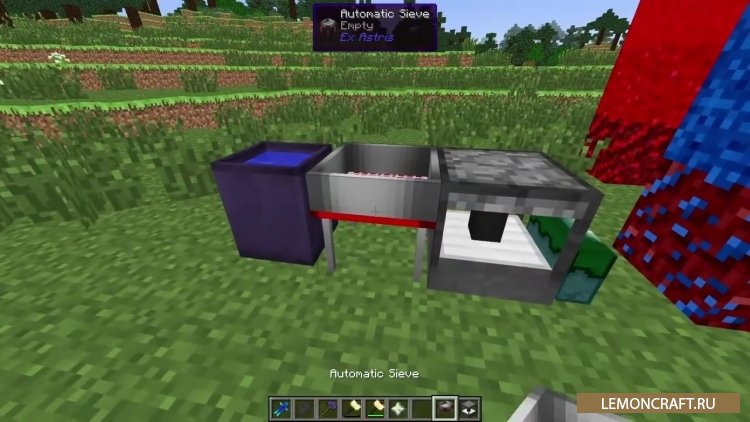 Мод на авто инструмент Ex Astris является небольшим дополнением для мода EX Nihilo. Он добавит в игру два новых инструмента: авто-молот и авто-сито, которые смогут работать на энергии. Данные инструмент позволят значительно повысить скорость производства и уменьшать процент потерь важных ресурсов при просеивании.