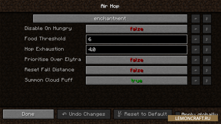Мод на множественные прыжки Air Hop добавит в игру новый вид зачарования, которое позволит вам осуществлять тройные и более прыжки. С этим модом вы сможете не просто подпрыгнуть в воздух, но еще и отталкиваться от воздуха во время прыжка. Теперь вы сможете преодалевать любые пропасти или ямы не строя при этом никаких дополнительных мостов.