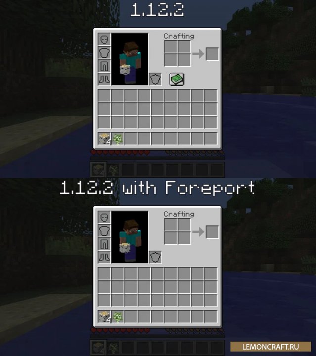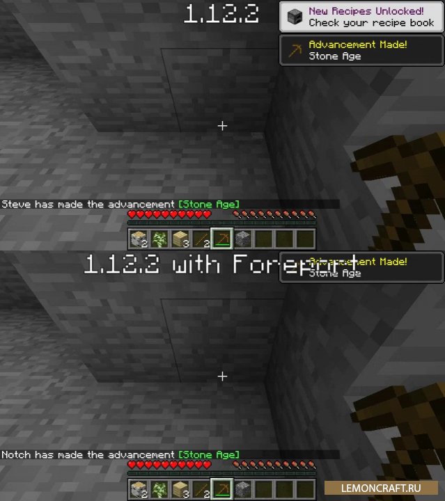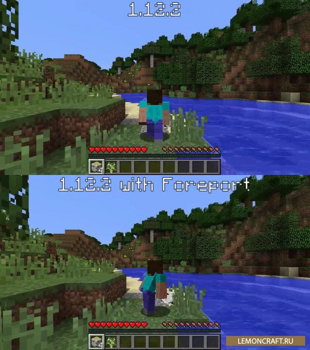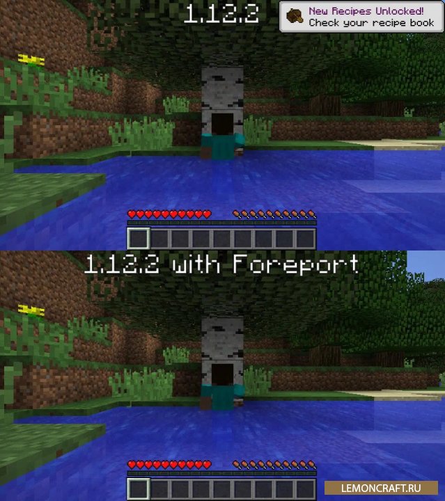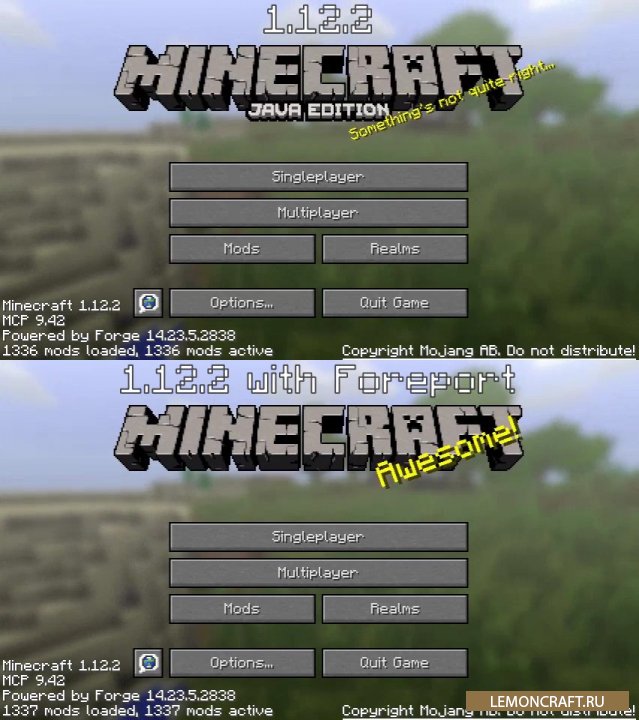 Мод на отмену нововведений Foreport отлично подойдет для любителей старых вариантов игры, вед данный мод уберет некоторые особенности, которые были добавлены в версии 1.12.2 игры майнкрафт. Например из игры будет убрана книга рецептов, анимация ходьбы, надпись "Java Edition", которая располагалась в главном меню и некоторые другие нововведения.
