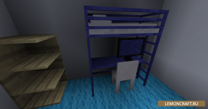 Мод на декоративные блоки Mo'Deco добавит в игру порядка 38 новых декоративных блоков с помощью которых вы сможете декорировать спальню, кладовую, гостиную, да и вообще, практически весь дом. В игре появятся несколько видов столов, журнальные столики, шкафы, лавки для улицы, кровать в два этажа, пианино, стулья. По технике вы сможете установить роутер, кассовый аппарат, огромный телевизор, компьютер. Так же в игре появятся несколько новых светильников, чучело крокодила, шкура медведя, которую можно положить на пол, снегоход, бургеры, средневековая баллиста.
