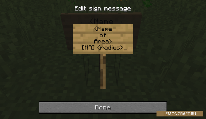 Мод на зоны с названиями Named Areas довольно полезный мод, который отлично подойдет для коллективной игры. Мод добавляет в игру специальные таблички, которые будут создавать зоны с определенным радиусом. Каждой зоне можно дать название и если другой игрок зайдет в эту зону, он получит сообщение в чате, что он находится в такой то зоне. Например можно обозвать зону "Торговля", тогда сразу всем будет понятно, что можно сделать на данном участке карты.