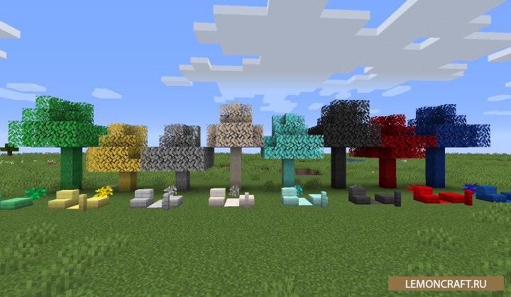 Мод на деревья-руды Ferroustry добавляет в игру 14 видов новых деревьев, вырастив которые вы сможете получить множество декоративных блоков а так же руды, после обработки в плавильной печи. Для того, что бы создать новый саженец, нужно разместить простой саженец в сетку крафта, а вокруг него расположить 8 единиц нужного элемента (золото, железо, редстоун). Кроме этого данный мод отлично подойдет для декорирования территории вокруг вашего дома.