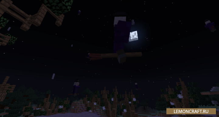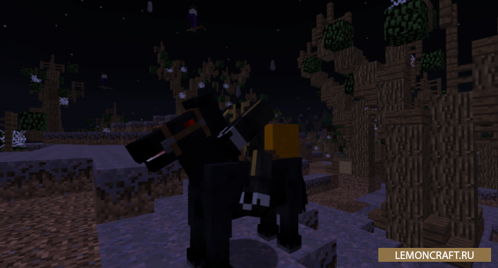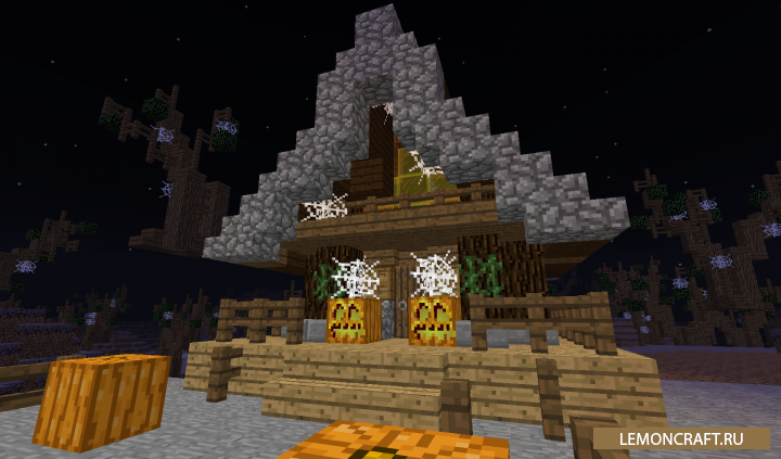 Мод на новый биом HallowCraft добавит в игру проклятый лес, который будет иметь новые структуры, населен новыми мобами и наполнен новыми вещами. Данный лес представляет собой территорию состоящую из больших деревьев на которых нет листвы, а ветви деревьев все в паутине. В этом лесу вы сможете найти заброшенный дом и дом с разными вещами. Но учтите, эти дома охраняются злыми мобами (скелеты, оборотни, пауки, призраки и др.). Так же в вашем мире появится новый босс - безголовый всадник Джейсон.
