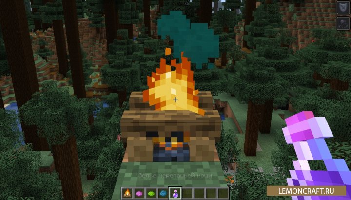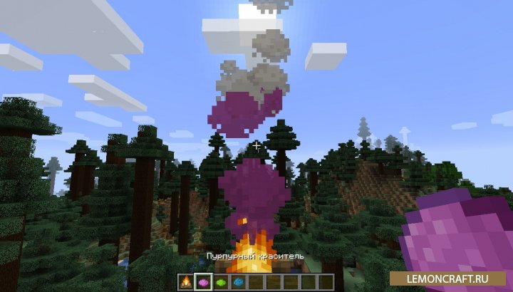 Мод на разноцветный дым Smoke Signal добавляет в игру возможность изменить цвет дыма от костра с помощью красителей. Для изменения цвета дыма возьмите краситель в руку и активируйте его нажав ПКМ по костру. Так же на костре можно применять различные зелья, эффект зелья будет распространяться в определенном радиусе от костра. Радиус распространения эффекта от зелий зависит от их уровня, для 1-ого уровня радиус равен 8 блокам, для 2-ого уровня - 16 блокам и так по нарастающей.