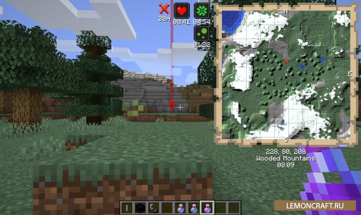 Мод на 3D миникарту Just Map добавляет в игру новую миникарту, которая будет иметь возможность масштабирования и отображать нужную информацию в 3 D режиме. Так же в можете помечать на карте нужные вам места вейпоинтами, благодаря чему вы всегда сможете найти нужное место.