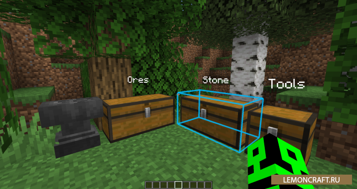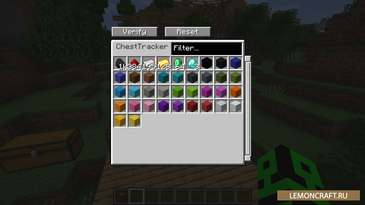 Мод о содержимом блоков хранилищ Chest Tracker осуществляет запись информации о содержимом блоков хранилищ после их закрытия. В итоге вы сможете, используя фильтры, найти нужные вам предметы в ближайшем из хранилищ. Когда вы найдете нужный предмет, тот сундук в котором он находится, будет подсвечиваться.