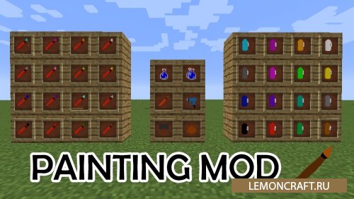 Мод на красящие инструменты Painting добавит в игру специальный набор инструментов с помощью которых вы сможете раскрашивать ванильные блоки в различные цвета.